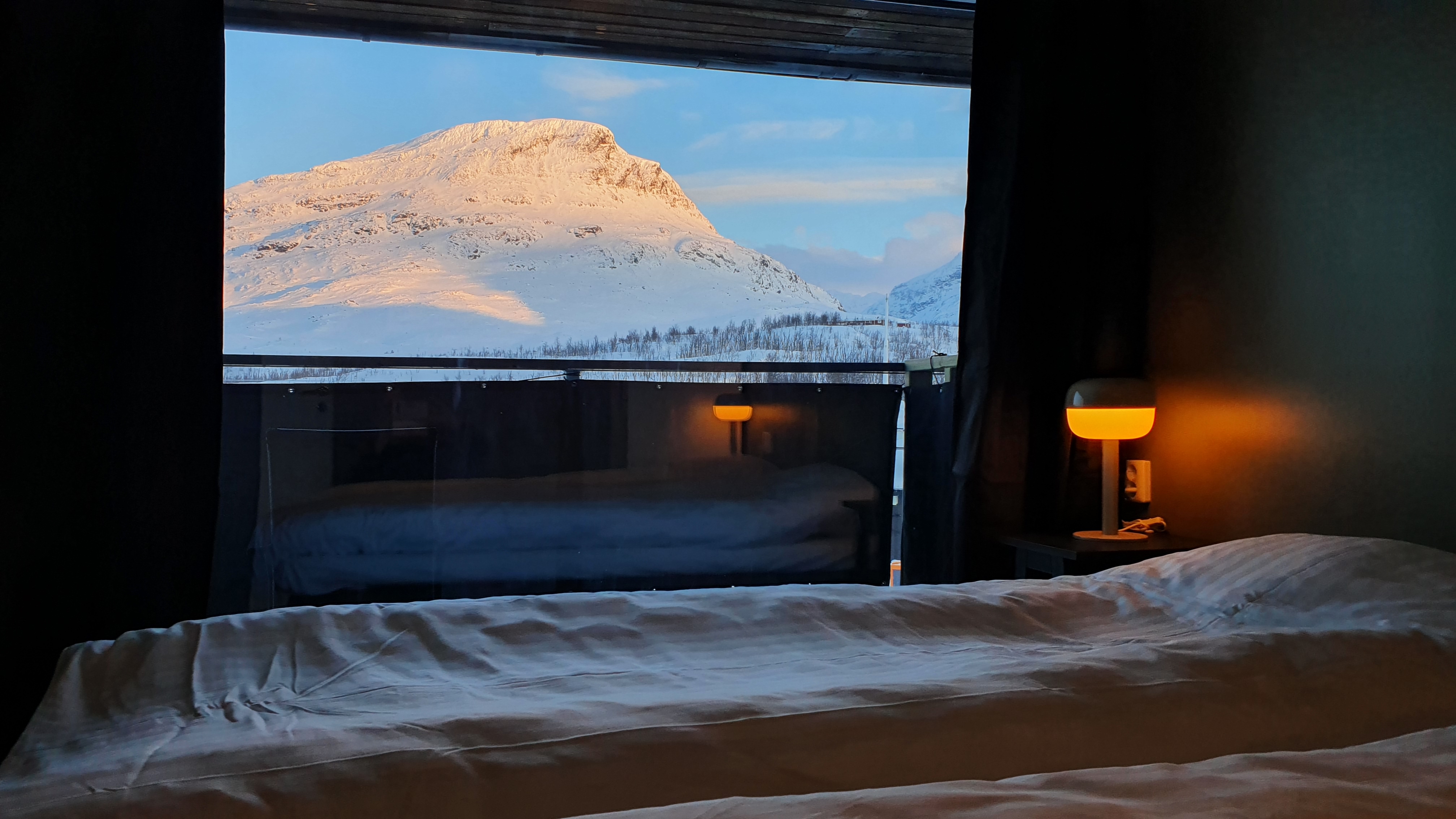 The nearest cities are Kiruna on the Swedish side (130 km) and Narvik on the Norwegian side (44 km).